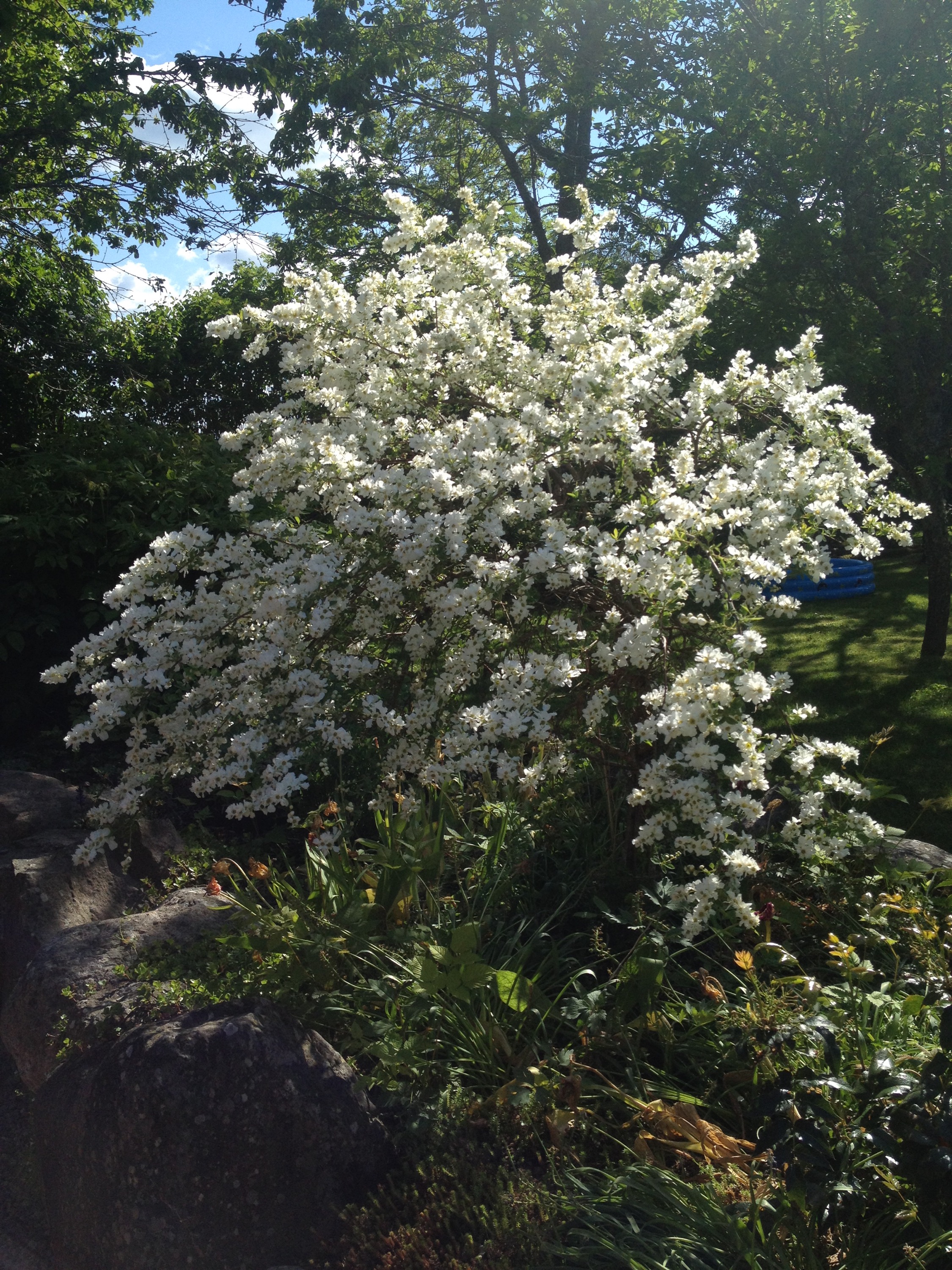Ungefär samma vy idag. Årets projekt ”bygga altan” blev också verklighet och jag blev mest lycklig för att jag fick en trappa ner till köksträdgården från den.